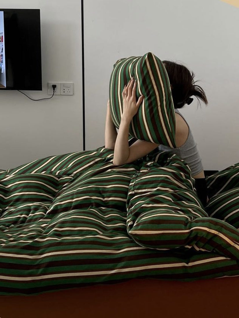 INDULGE YOURSELF IN THE LUXURY OF A RESTFUL SLEEP WITH THIS RETRO STRIPE DUVET COVER SET